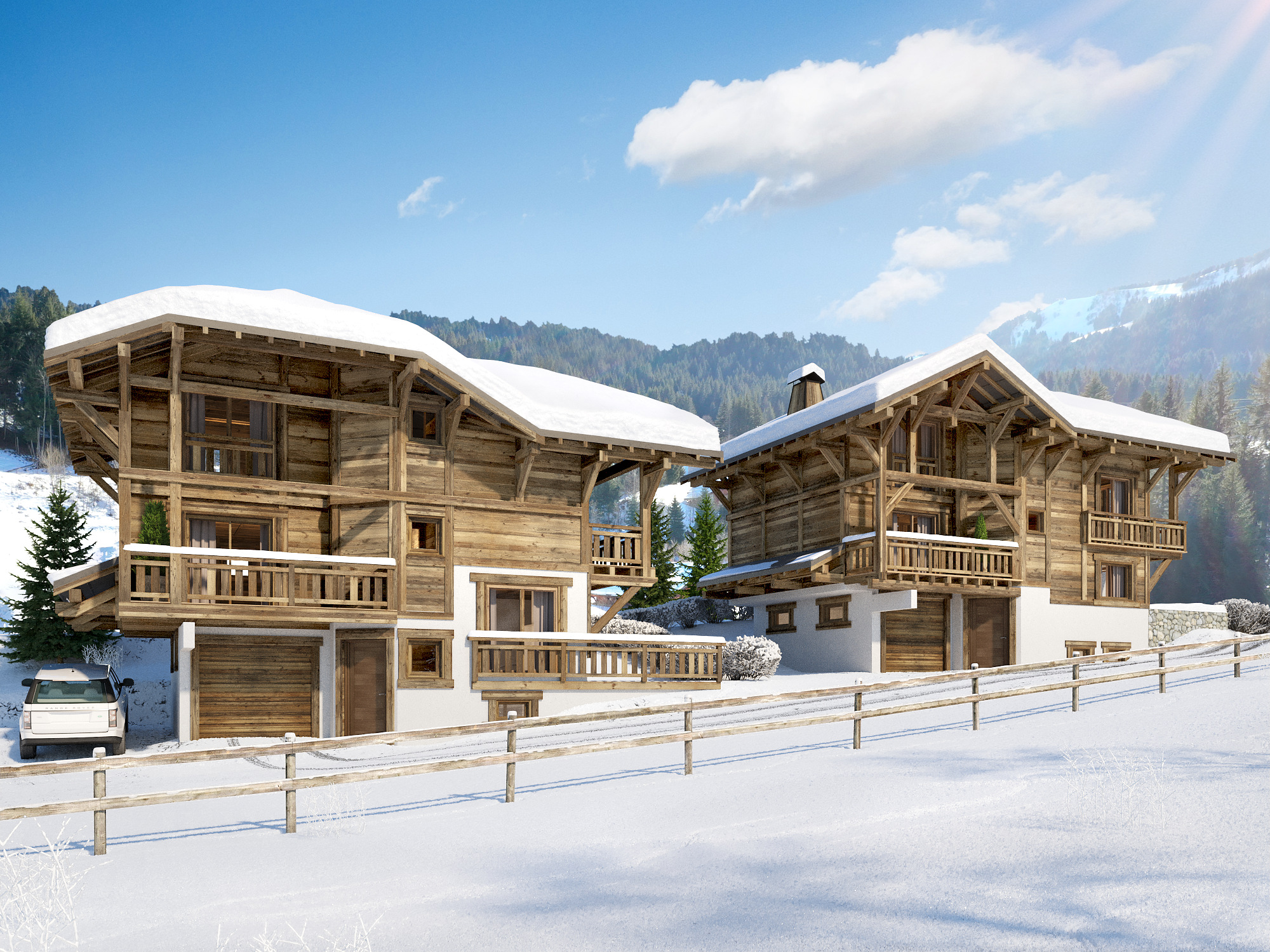 Les deux chalets sont en copropriété horizontale et sont situés sur un terrain d’une surface totale de 700 m².